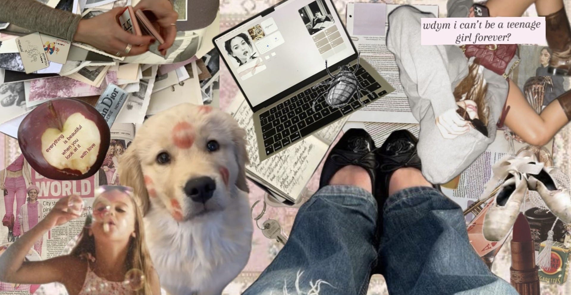 It felt less like adulthood and more like the crafts we used to do at fourteen, where we stayed up until sunrise hot-glueing rhinestones to notebooks and thinking we were reinventing the world. And underneath it all, we’re still girls, still saving screenshots of dumb texts, still squealing over crushes, still half-convinced a perfect outfit can change the outcome of a night. Some of my friends are becoming mothers, while I’m still texting mine to ask if wool can survive the dryer. The dissonance is absurd, old enough to raise someone else, young enough to need supervision for groceries. Their adulthood feels as precarious as my adolescence did: nervous, makeshift, full of choices that feel heavier than they probably are. And there’s something sweet in that, too, the way seriousness and silliness blur together. Picking a mug colour, planning a nursery, deciding whether to text him back: all different costumes for the same nervous theatre of growing up.